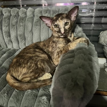 Metexa Cleo -Chocolate Tortie Oriental female - “ I am AVAILABLE - just waiting to be pampered x "